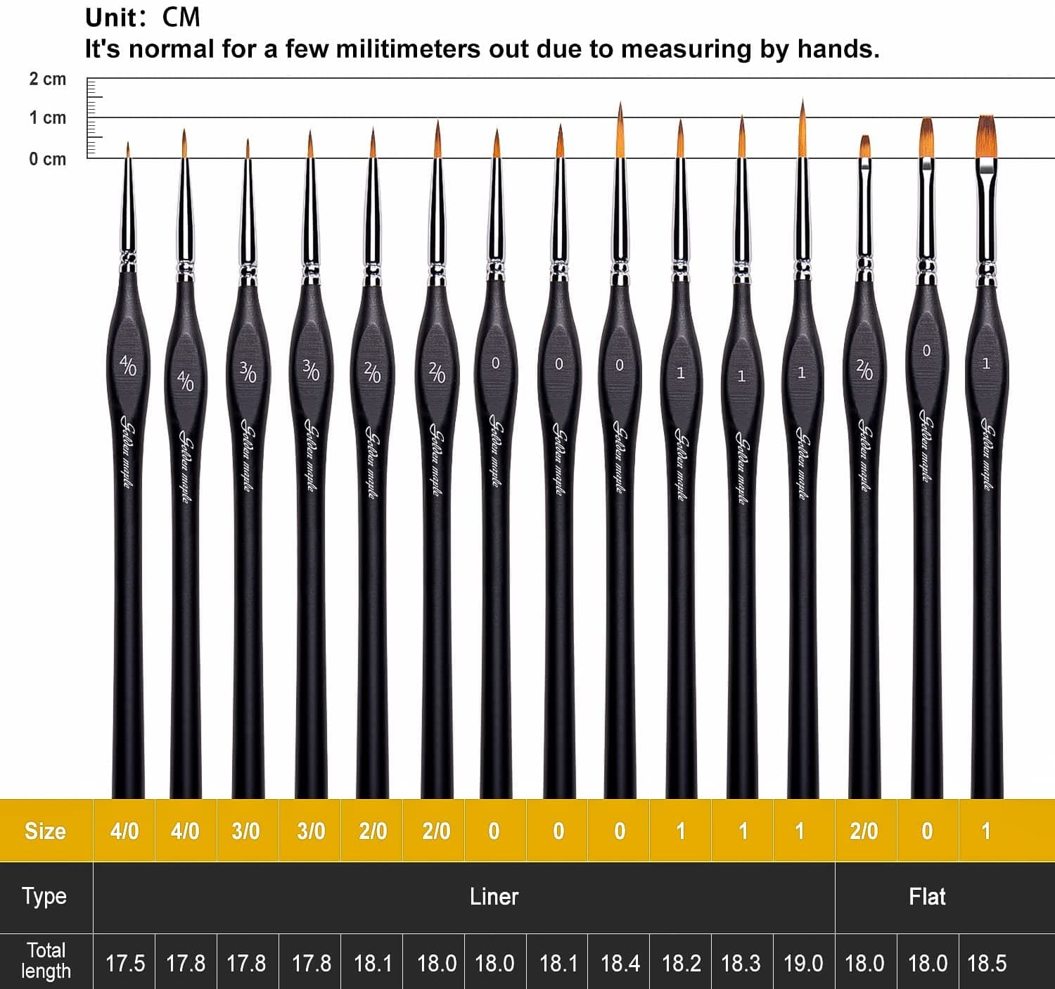 Golden Maple 15PCS Nylon Micro Detail Paint Brush Set Round/filberd/Flat Brush