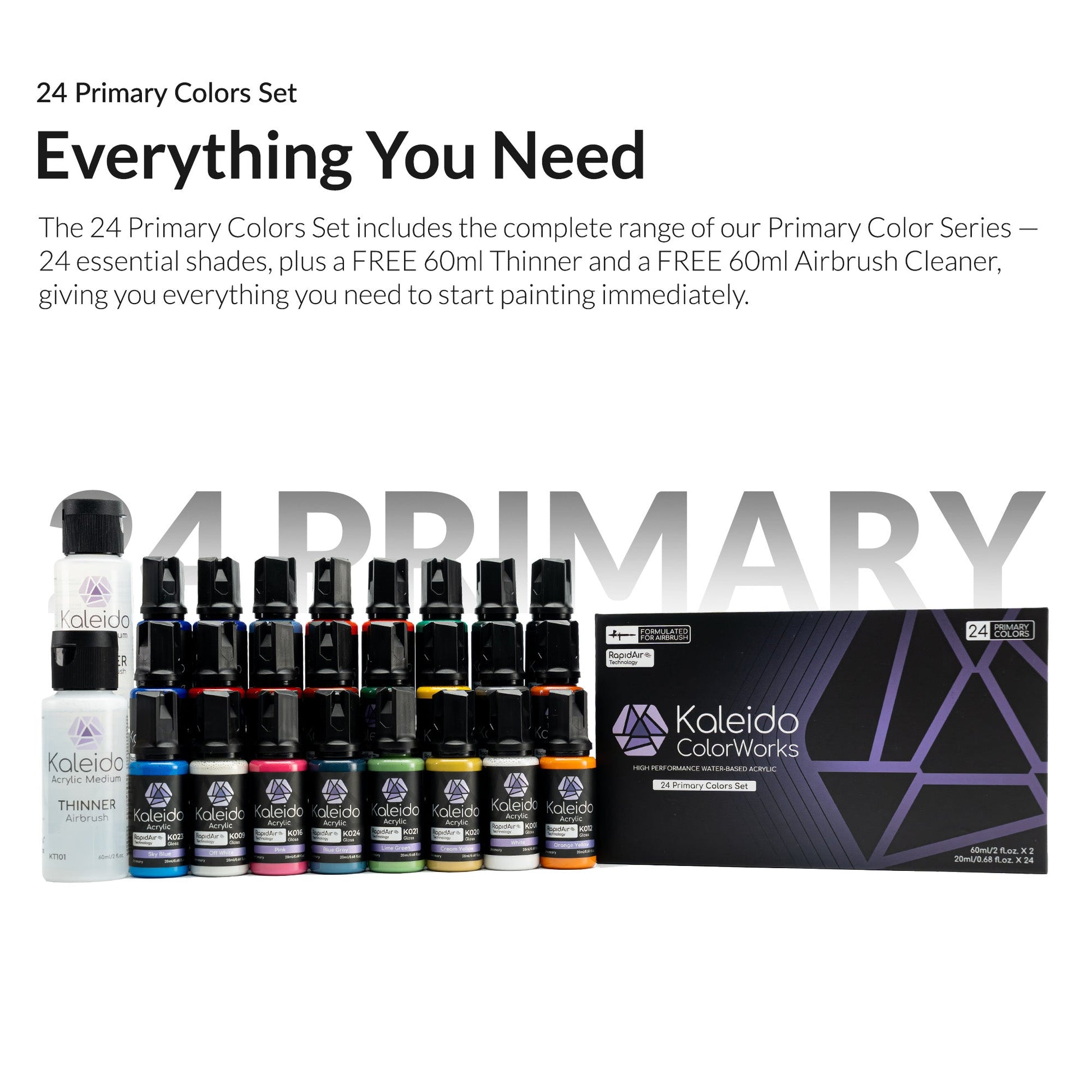 • Complete 24-colour primary palette for versatile paint mixing and coverage
