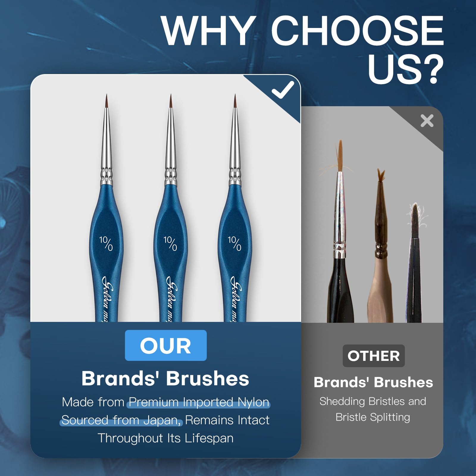 The ergonomic handles are balanced for steady control and comfortable long sessions — giving you the precision needed for the smallest details without hand fatigue. Compatible with acrylics, inks, washes and other fine pigments, this 6-piece brush set elevates your miniature painting — giving your small-scale armies, dioramas, and figure crews clean, sharp, professional-quality finishes and unmatched detail definition. Whether you are touching up tiny lenses, free-handing intricate patterns, or adding weathering and edge highlights, these brushes deliver control, consistency, and polish.