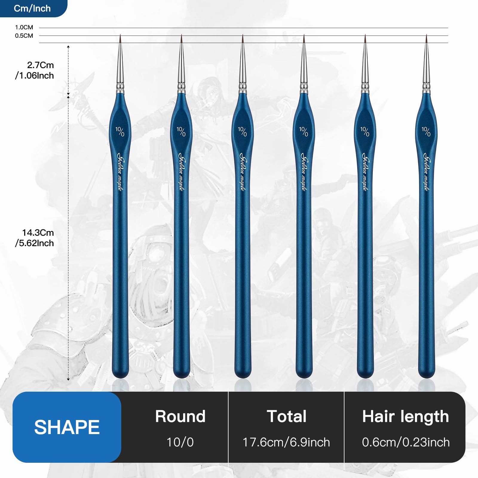 Golden Maple 6PCS 10/0 Extra Fine Detail Miniature Paint Brush Set