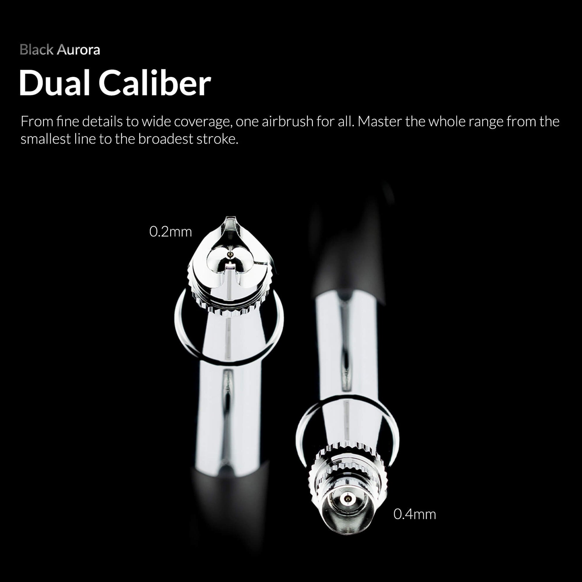 Dual-Caliber Versatility: The kit includes both 0.2 mm and 0.4 mm nozzles. The 0.2 mm setup is ideal for ultra-fine details, panel shading, micro highlights, and weathering — while the 0.4 mm nozzle is perfect for base coats, broad coverage, and faster application.