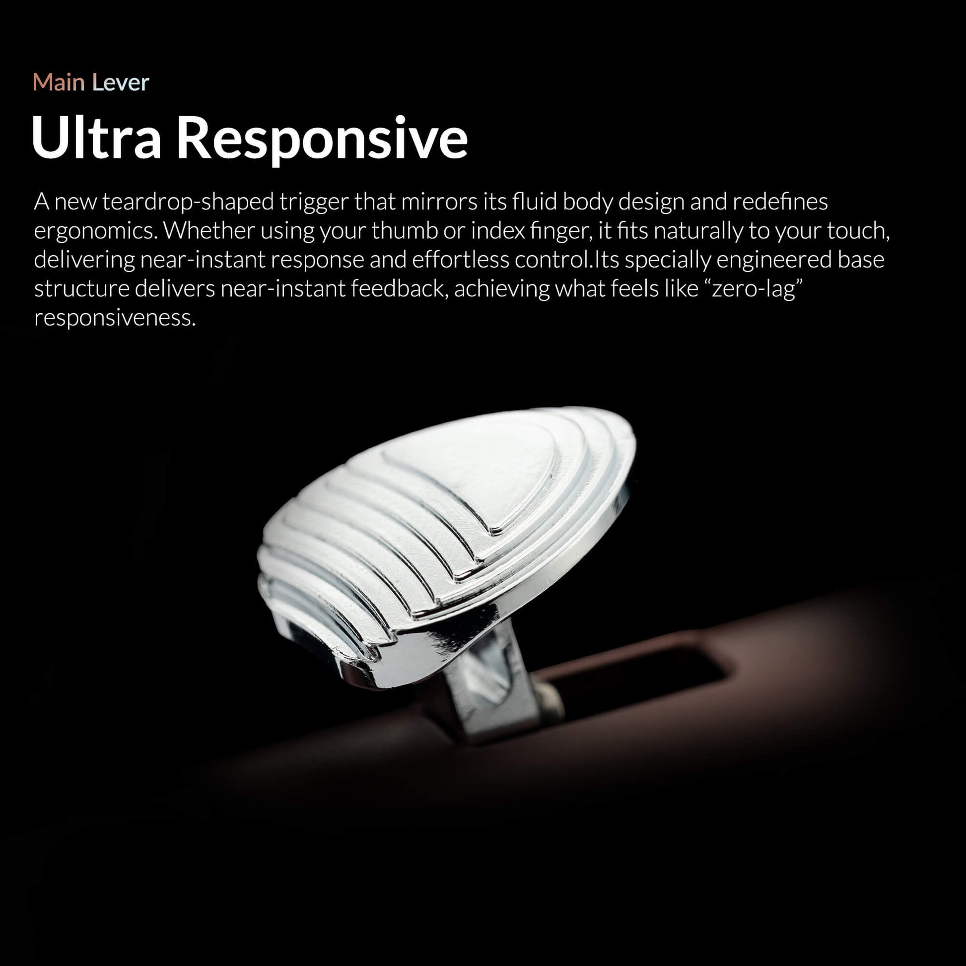 CNC-machined Aluminium Body — Balanced & Ergonomic: Crafted from a single block of aerospace-grade aluminium, the Crimson Crown’s seamless, weld-free body offers a refined pen-like feel that sits naturally in your hand. Balanced for long sessions, it lets you paint with steady control and minimal fatigue.