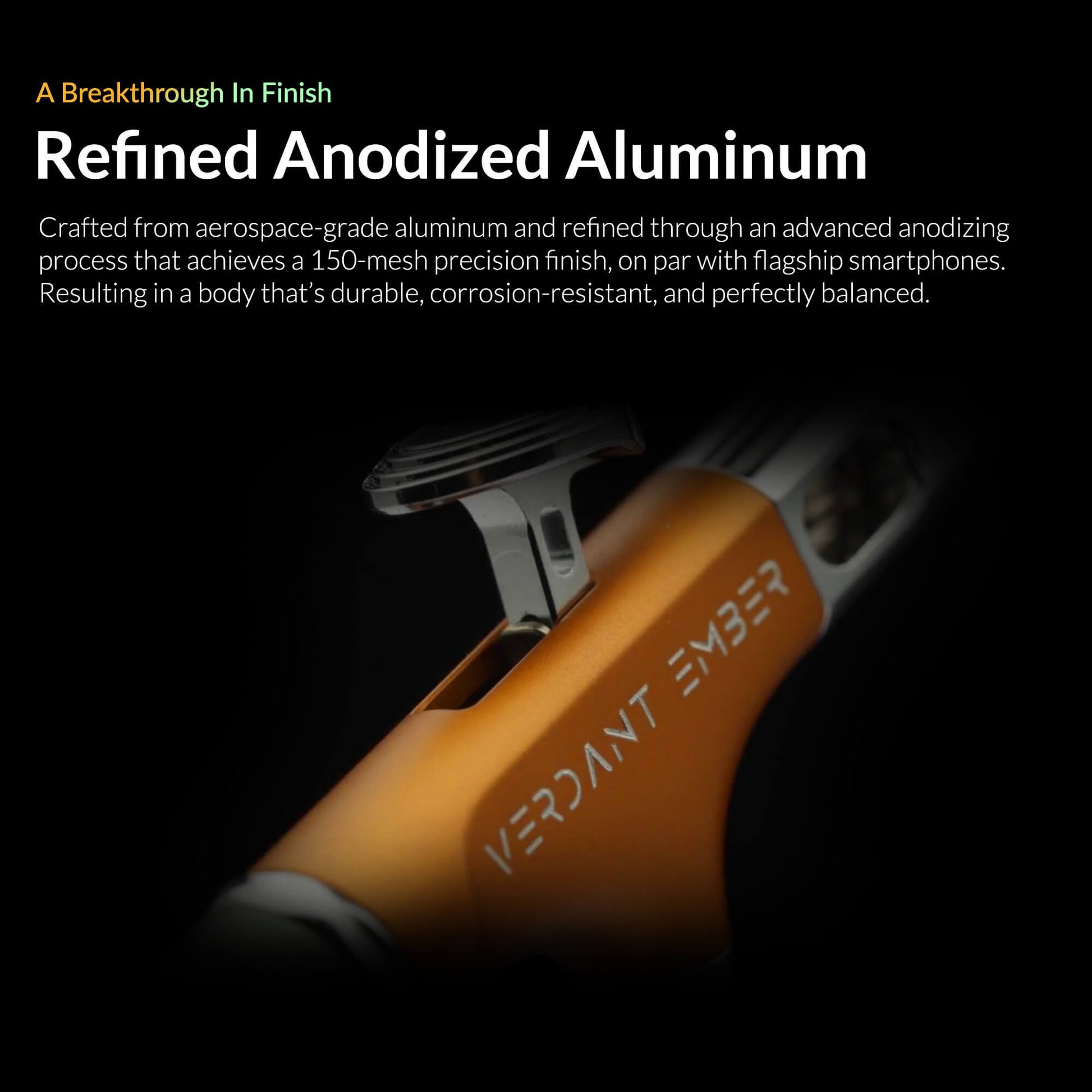 Premium Anodized Finish: The sophisticated Verdant Ember finish offers a refined satin-matte texture, durable corrosion resistance, and optimal balance — combining strength, light weight, and a premium tactile feel.