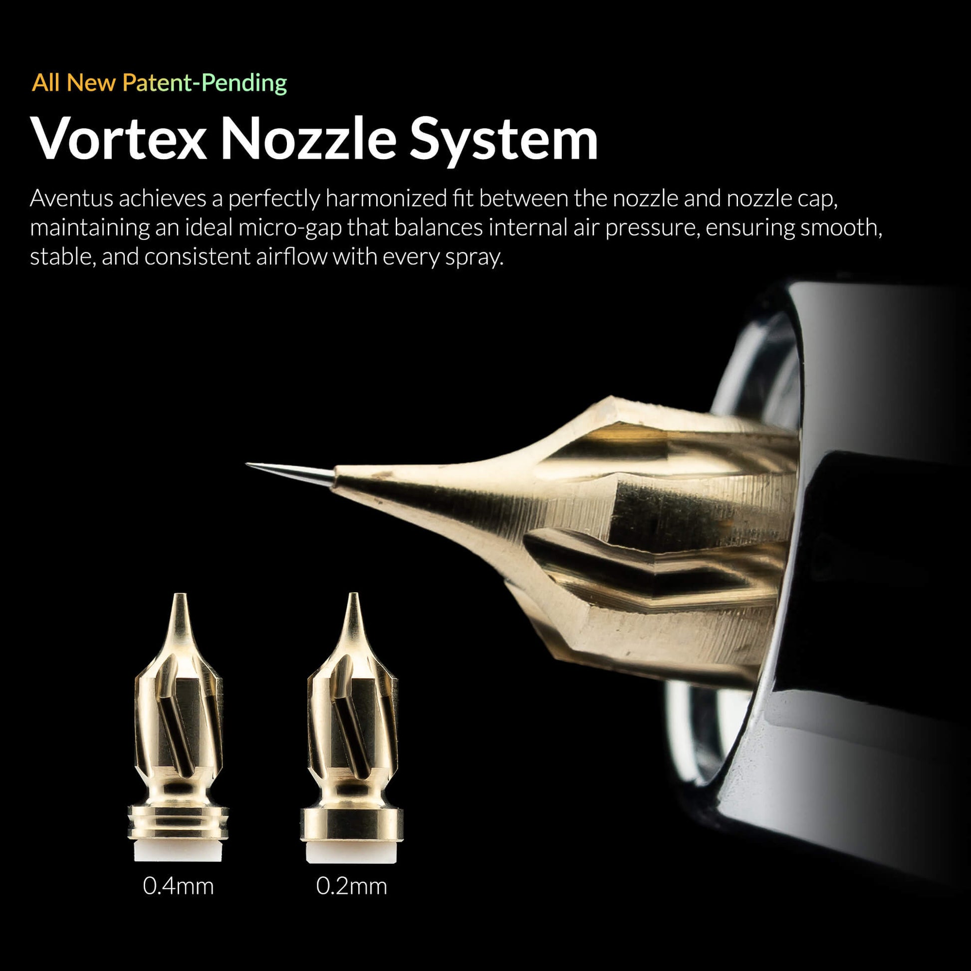 Advanced Vortex Nozzle Atomisation: The patent-pending vortex airflow system ensures a finely atomized spray even at lower pressure, resulting in smoother gradients, cleaner blends, deeper control, and reduced overspray.