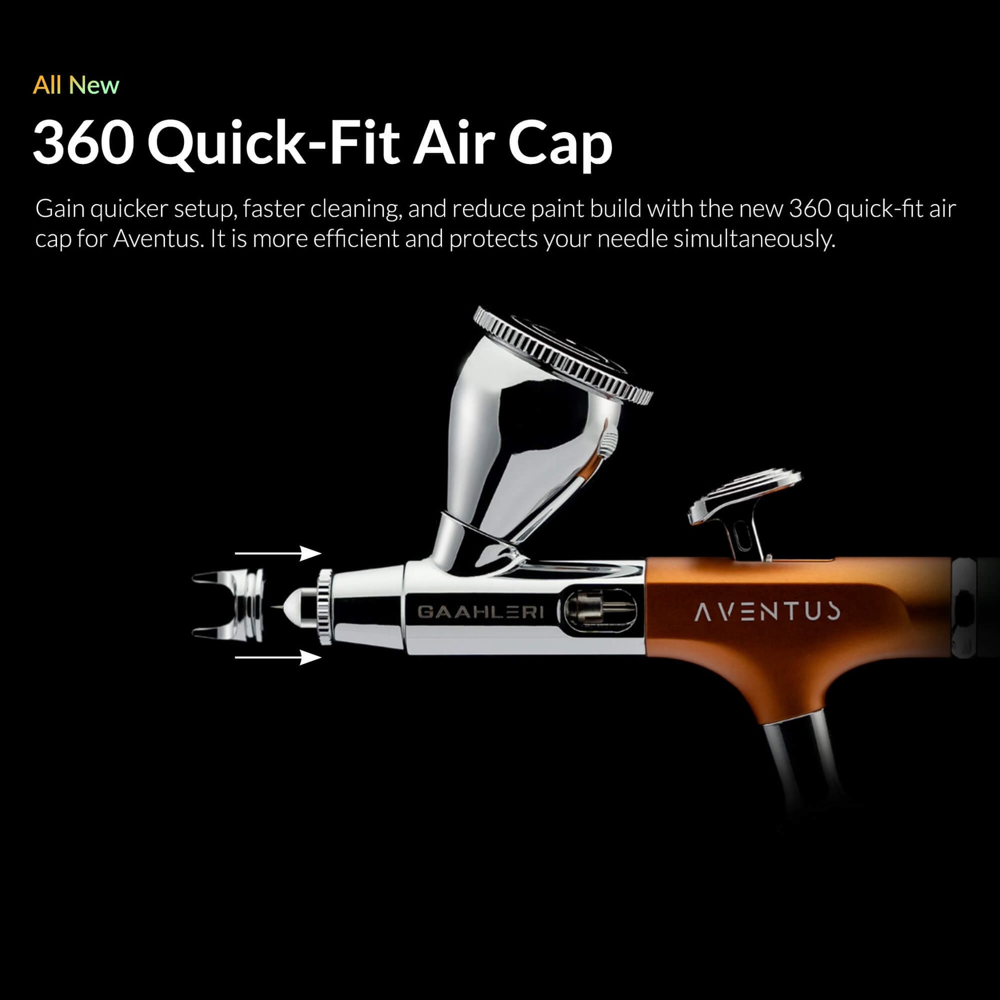 Quick-Fit Air Cap & Easy Maintenance: The all-new 360° quick-fit air cap simplifies setup, teardown, and cleaning — reducing paint buildup and safeguarding the internal needle assembly for consistent performance.