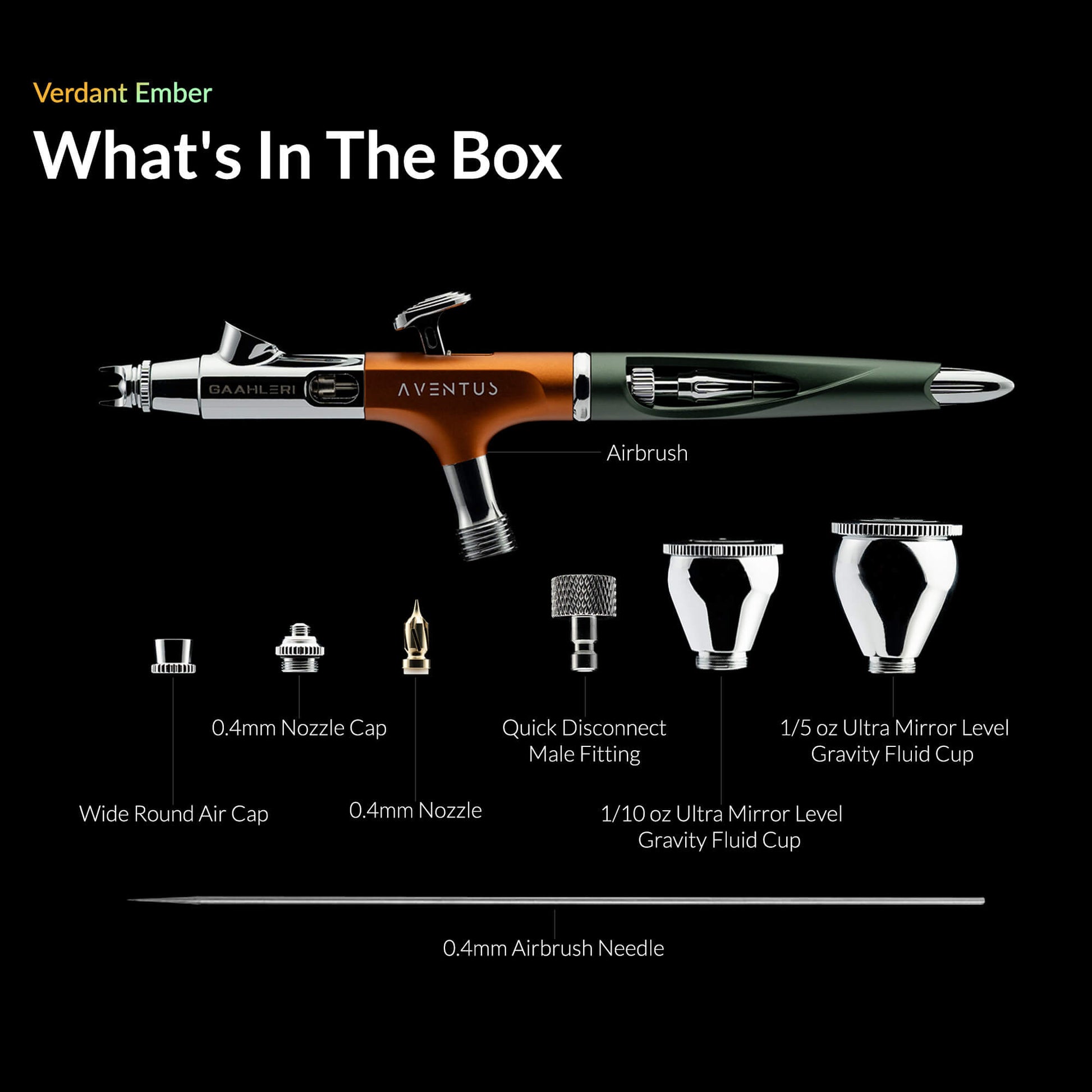 Aventus Verdant Ember is perfect for scale modelers, miniature painters, custom artists, and hobbyists who value precision, versatility, and comfort. Whether you're working on tiny details, subtle weathering, smooth base coats, or large-scale spraying — this airbrush offers the control, flexibility, and ergonomic design you need to push your craft forward.
