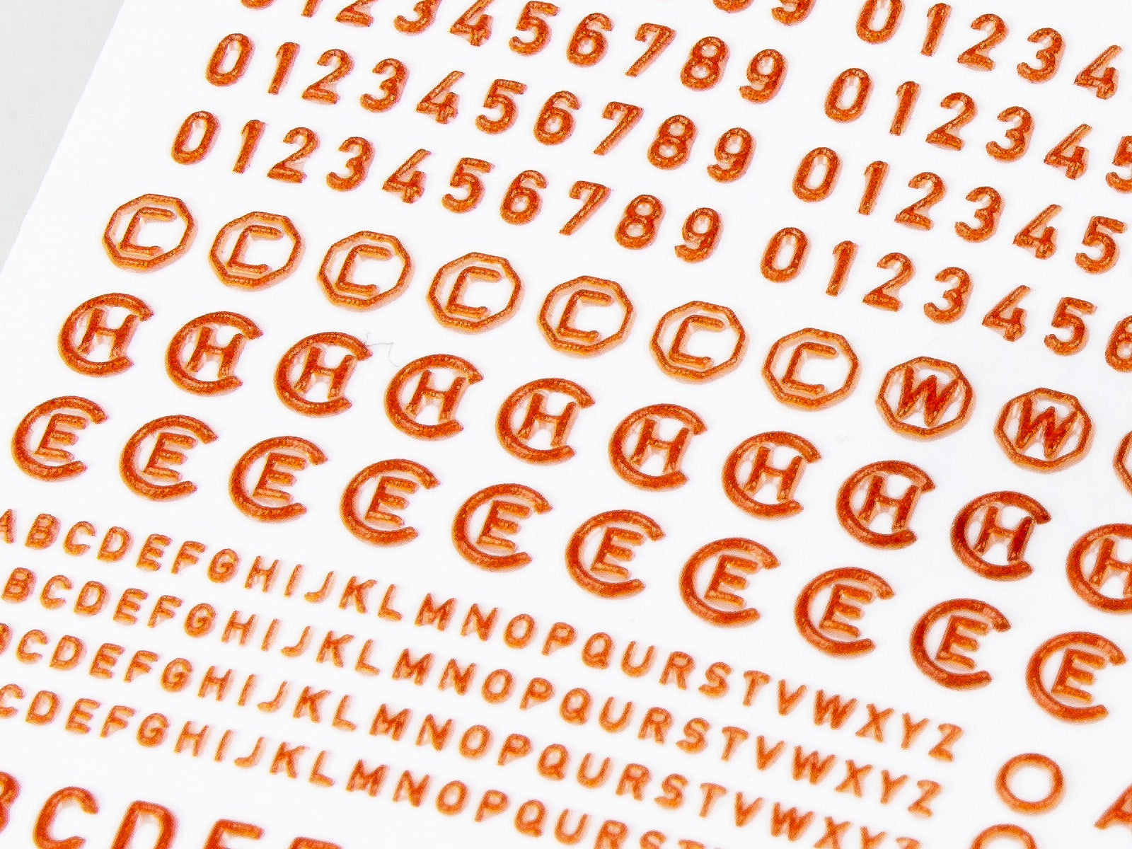 Pre-coloured, UV-cured 3D resin numerals & letters — no painting required.