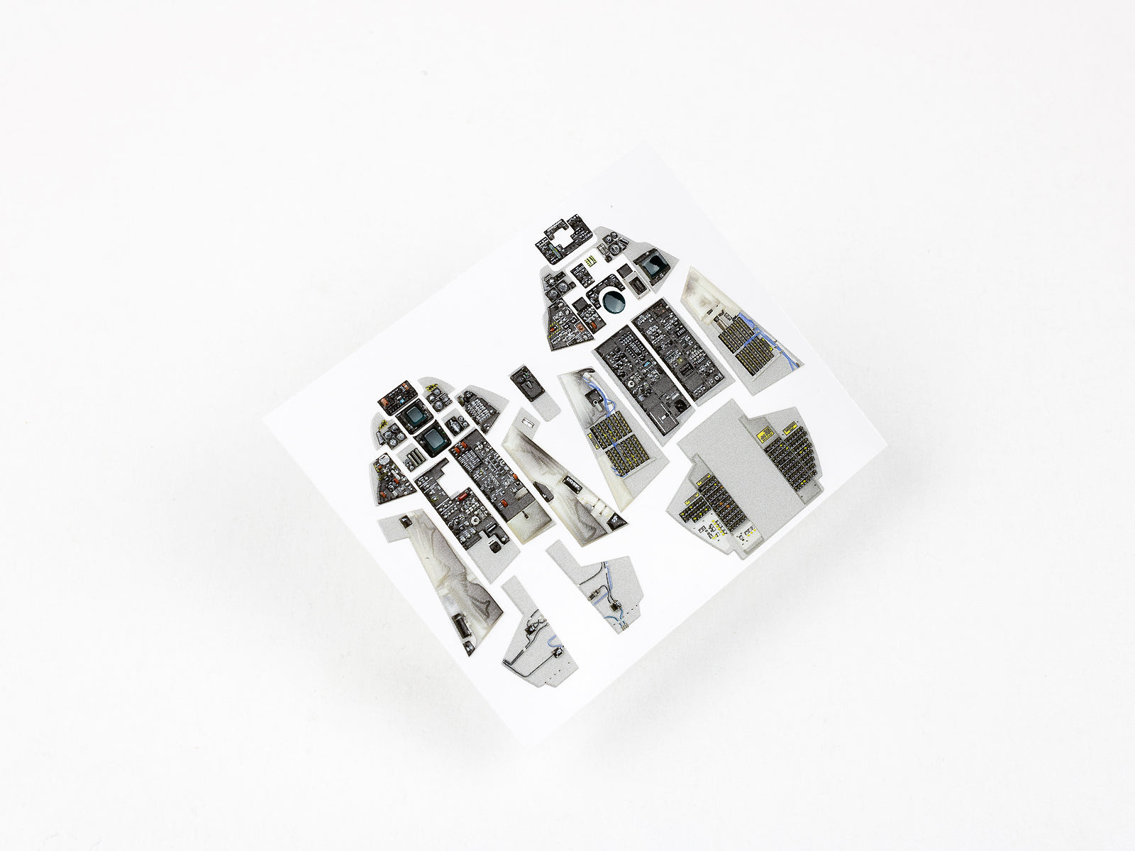 Designed specifically for Academy’s F-14A kit, this set includes ultra-detailed, pre-coloured 3D-printed resin panels covering the pilot’s cockpit, the RIO’s (Radar Intercept Officer) station, and the full-length sidewalls on both positions. Every switch, MFD, radar display, dial, and avionics panel is reproduced with crisp raised detail, authentic colouring, and realistic cockpit texture.