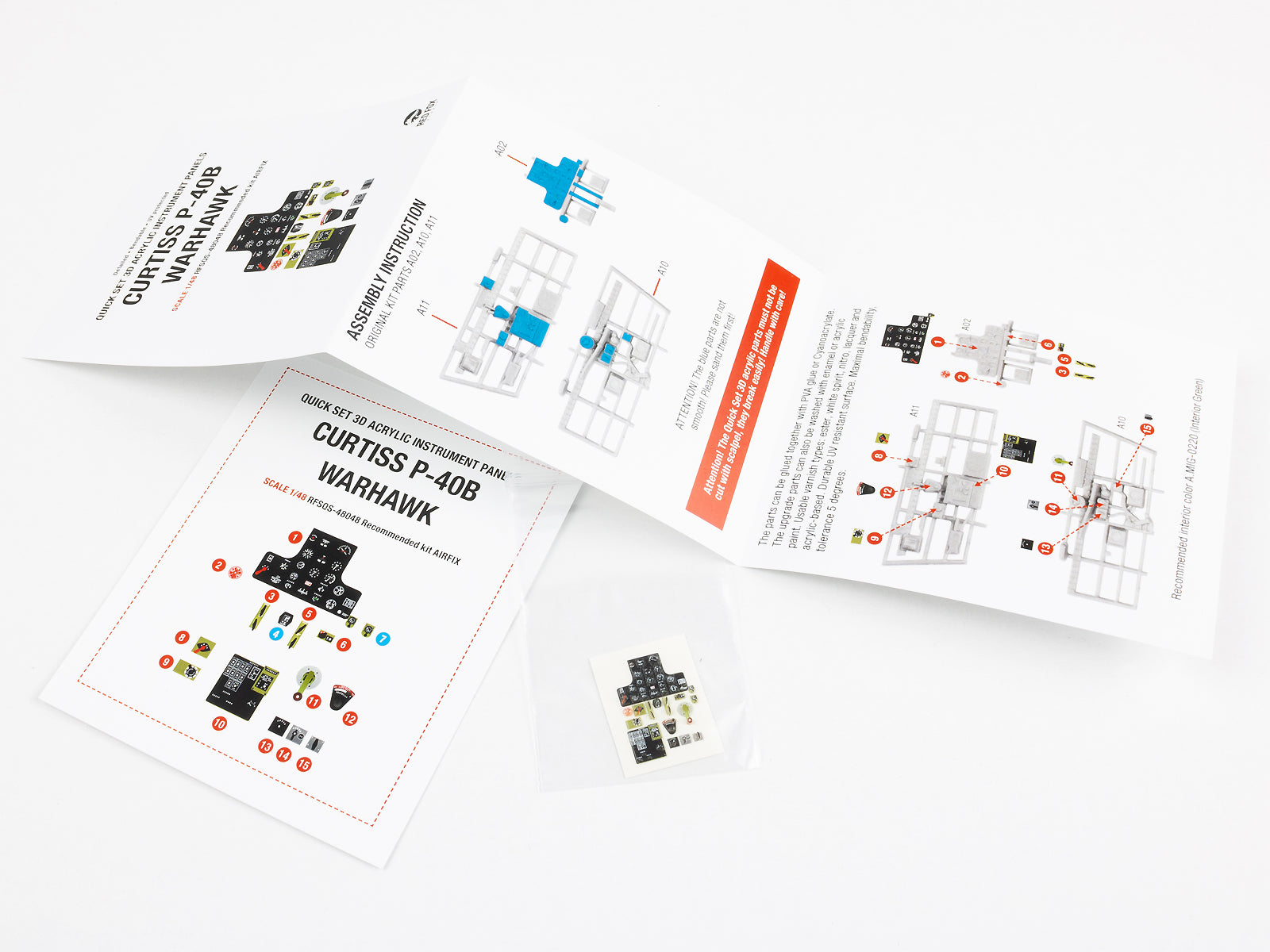 Every dial, switch, and instrument bezel is printed in high resolution with crisp edges, realistic depth, and accurate early-war USAAF colour tones. Installation is fast and simple — remove the raised kit detail, apply the self-adhesive 3D decals, and transform your cockpit into a display-quality interior without complex painting or photo-etch assembly.