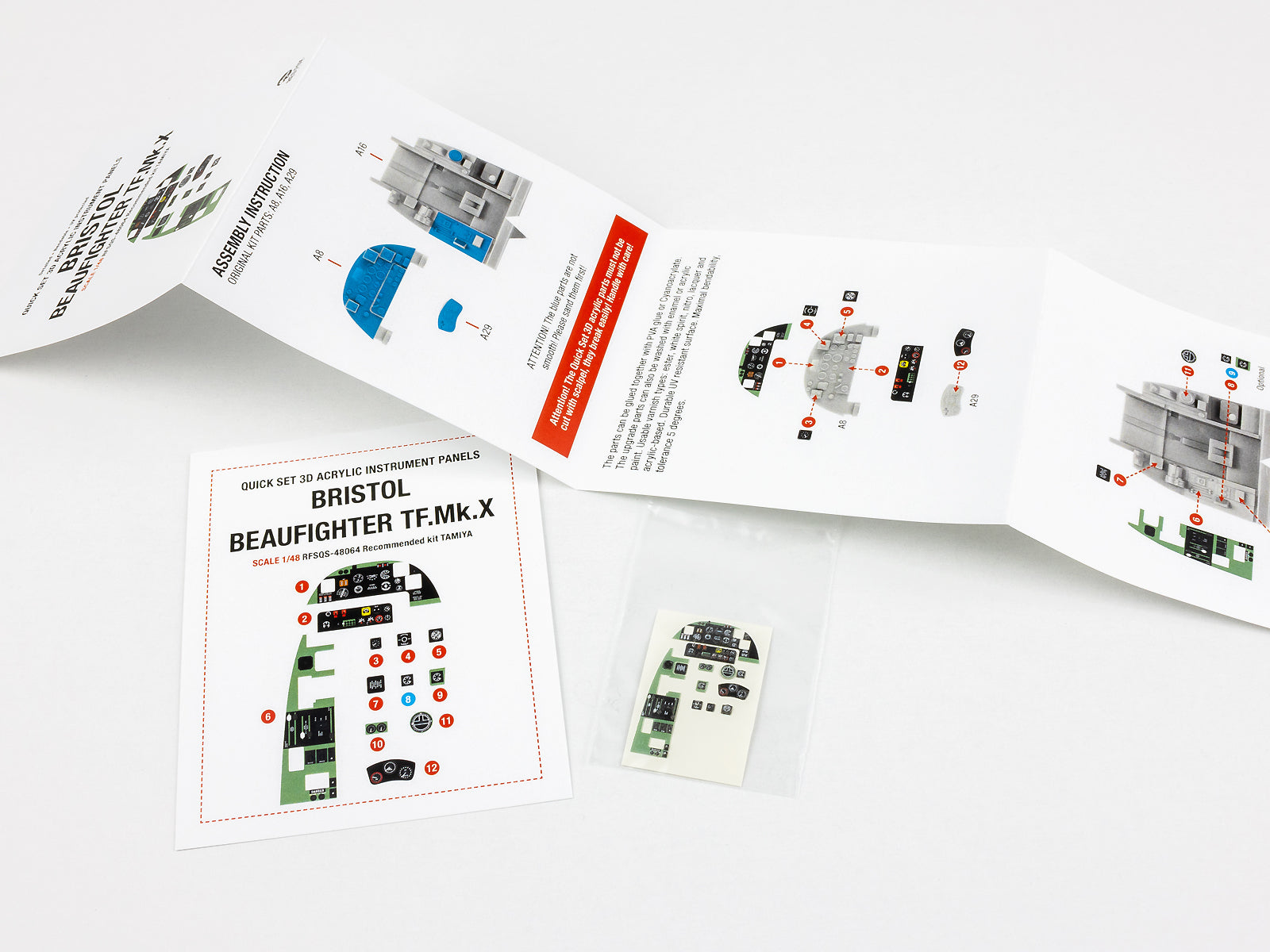 Installation is quick and clean: simply remove the moulded kit detail, apply the self-adhesive 3D parts, and instantly elevate your cockpit to museum-quality standard. Ideal for modellers depicting anti-shipping strike aircraft, Coastal Command operations, D-Day period Beaufighters, or late-war night-fighter conversions based on the TF Mk.X cockpit layout.