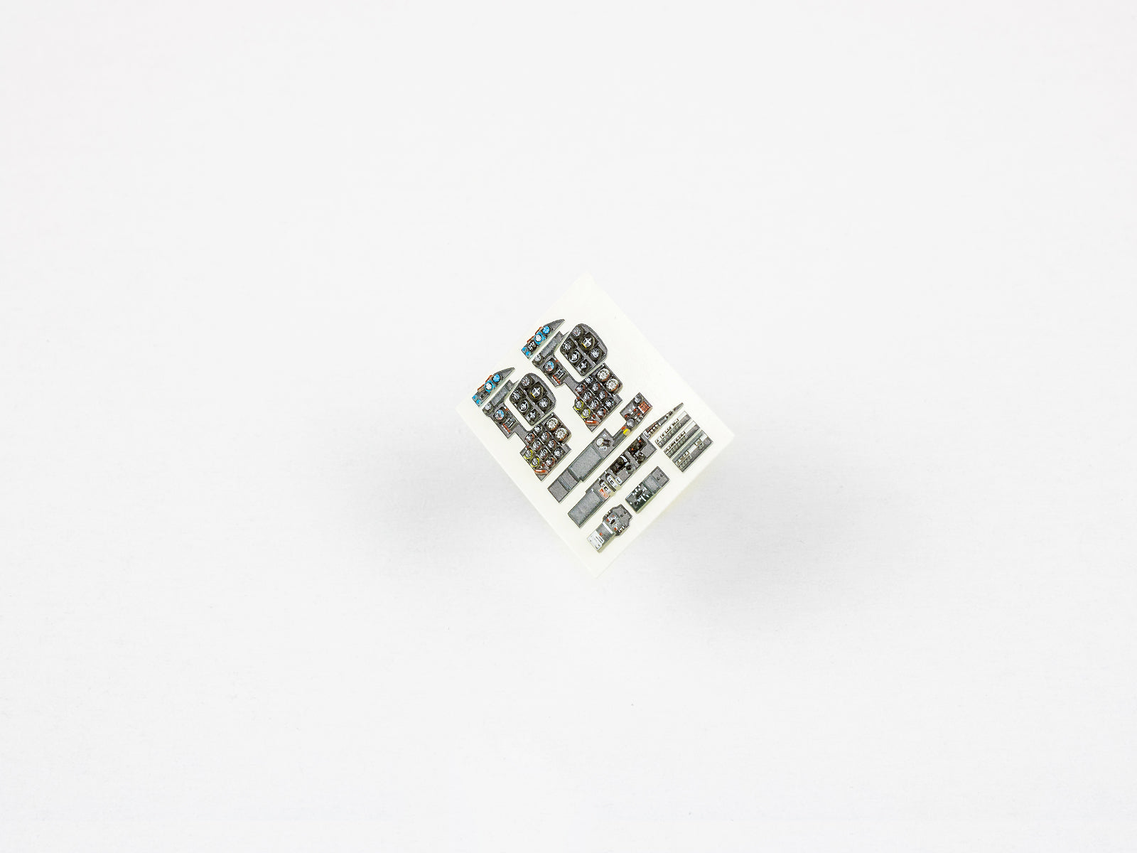 This set features ultra-sharp, high-resolution 3D-printed resin panels that replicate the distinctive Me 262 cockpit layout, including the prominent main instrument cluster, side consoles, flight controls, electrical panels, and fuel/engine monitoring gauges. Every dial, switch, and bezel is printed in vivid colour with raised detail that far surpasses standard decals or photo-etch.